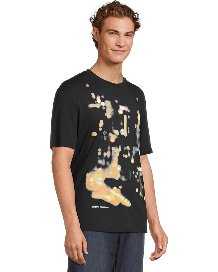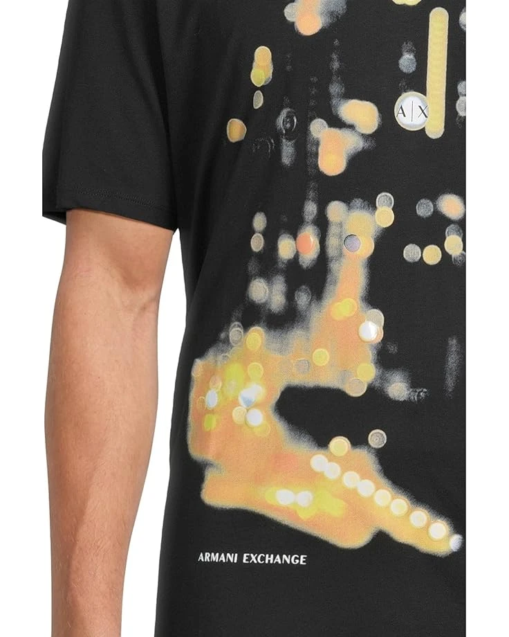 - Looking for a stylish update to your everyday T-shirt collection? Look no further than the Armani Exchange® Men’s City Lights T-shirt. Crafted from a soft cotton jersey, this T-shirt offers a crew neckline, short sleeves, and a straight hem for a relaxed fit. The eye-catching graphic of blurred oversized city lights on the front adds a modern touch to your ensemble.