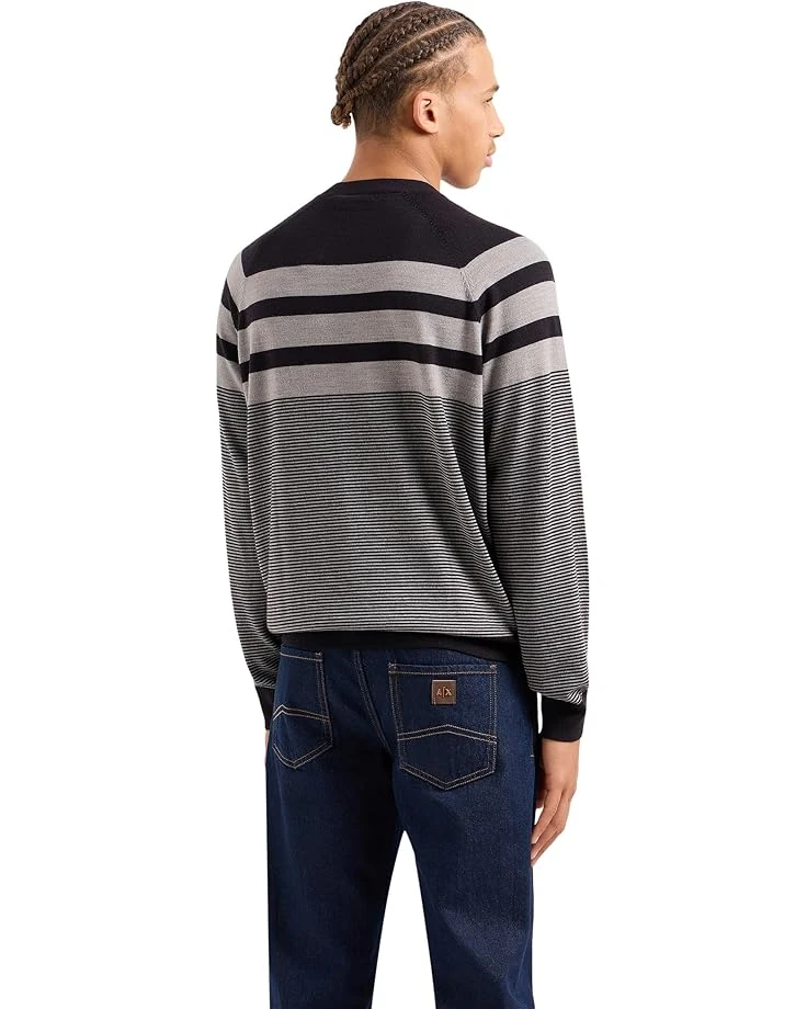 - Elevate Your Casual Wardrobe With The Armani Exchange® Ax Striped Sweater, a versatile and stylish addition. Crafted from a blend of premium materials, this sweater combines comfort with contemporary design. Plus, it features a crew neck, long sleeves with ribbed cuffs, and a straight ribbed hem. The classic navy and driftwood stripes offer a sophisticated contrast, perfect for both casual outings and relaxed evenings.