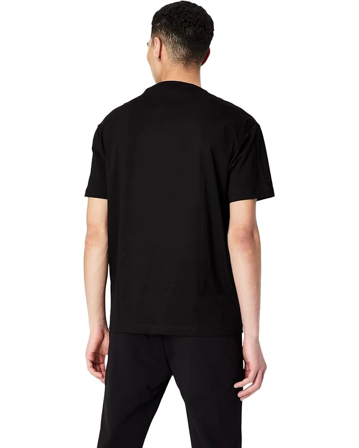- Stay trendy and fabulous by donning the Armani Exchange® Black/Gold Icon Logo Tee highlighting a minimal design.