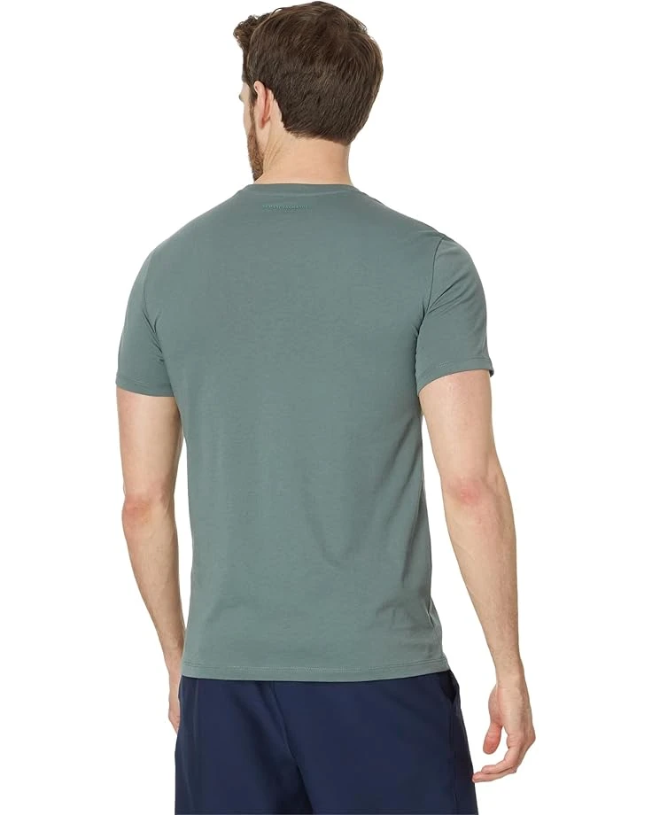 - Stay comfy and relaxed in the casual Armani Exchange® Box Logo Tee highlighting a branded design.