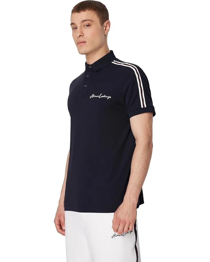 - Elevate your casual look with this effortlessly cool and versatile Armani Exchange® Piquet Polo Shirt. This pullover polo shirt feature classic ribbed polo collar, three-button placket, and short sleeves with stripe design and ribbed cuffs.