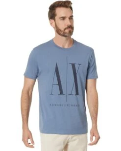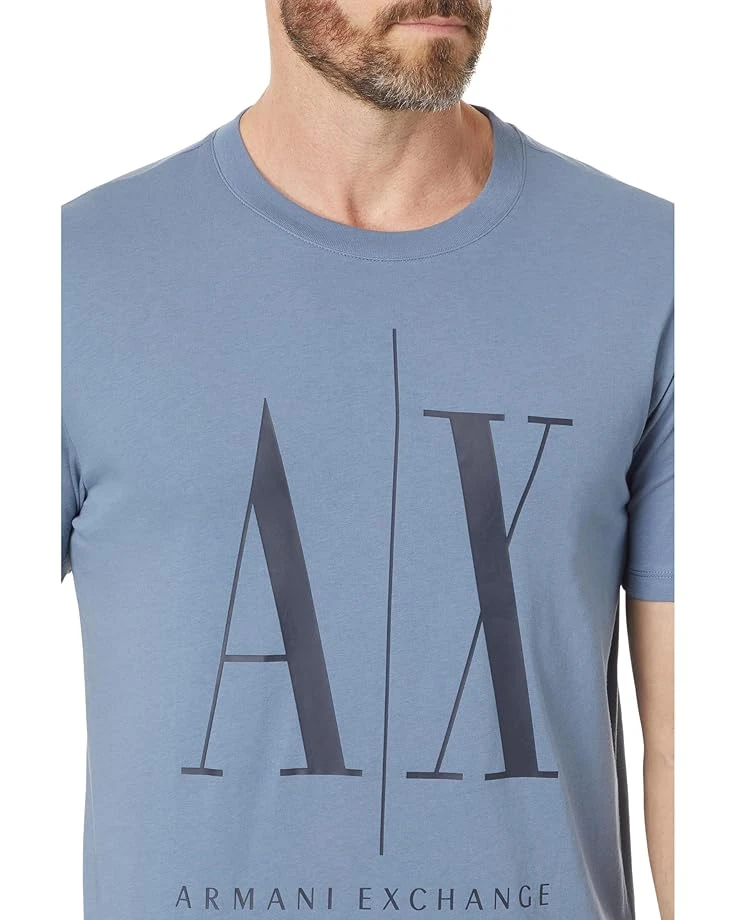 - The Armani Exchange® Regular Fit Cotton Jersey Ax Icon Logo Tee features brand logo graphics on the front for a stylish appeal. Made from breathable cotton fabric, this casual tee is perfect for your everyday wear. The short sleeves, crew neckline, and straight hem add to its appeal. This cotton tee is perfect to pair with different denim or trousers.