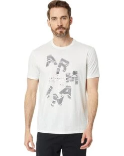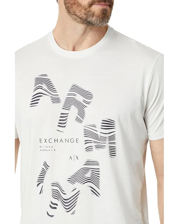 - Look bold and celebrate comfort all day long wearing the Armani Exchange® Regular Fit Pima Cotton Jersey Large Logo Tee. Lightweight and breathable, this pure cotton tee comes in a regular fit with a crew neck and short sleeves and features a striped abstract logo print with text on the front.