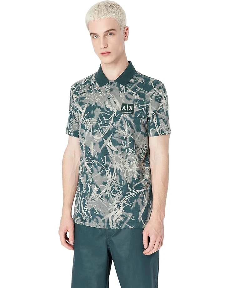 - Flex a cool style by donning the Armani Exchange® Seasonal Pattern Print Logo Patch Polo shirt.