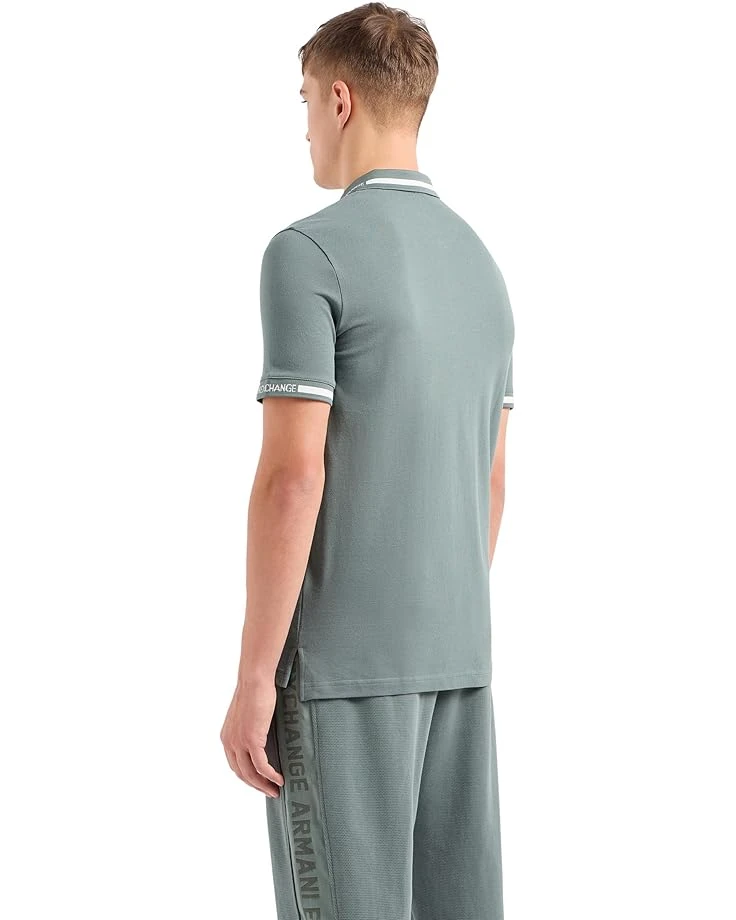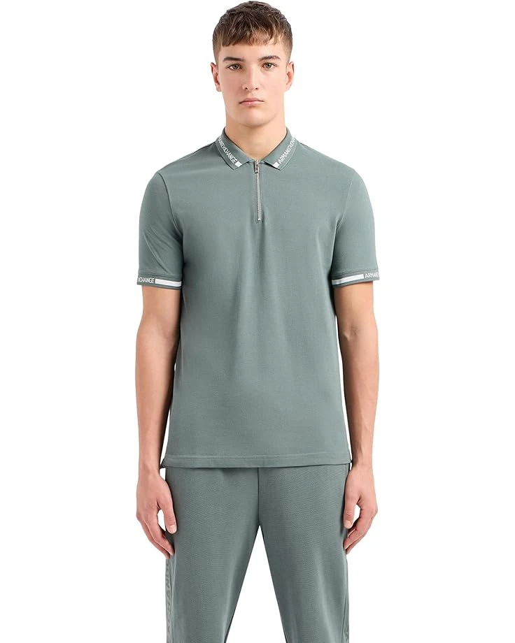 - Add the Armani Exchange® Short Sleeve Zip-Up Logo Collar Polo tee for a casual outdoor walk on a hot summer evening stroll in the town. It features a regular fit, pull-on style, and collared neckline with half zipper closure. The short sleeves, logo details on the collar/sleeves, and Polo tee design make it a unique piece.