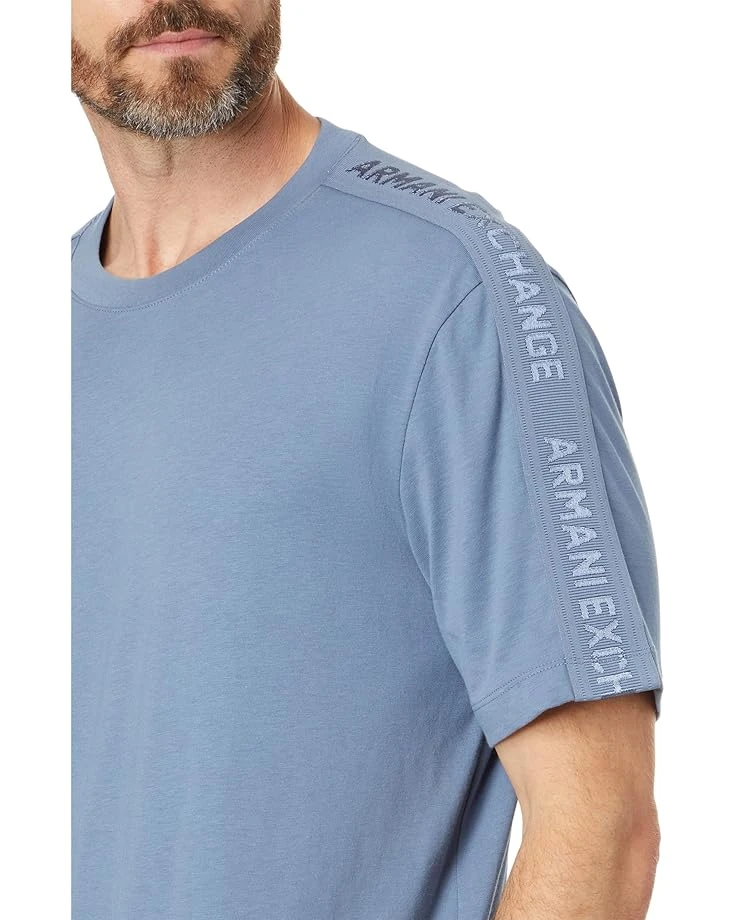 - Add a stylish touch to your everyday looks wearing Armani Exchange® Small Embroidered Logo Regular Fit Tee. This regular-fit tee features a crew neck, short sleeves, an A|X tonal embroidery logo on the front left chest, logo-printed ribbons on the sleeves, and a standard-length silhouette with straight hem.