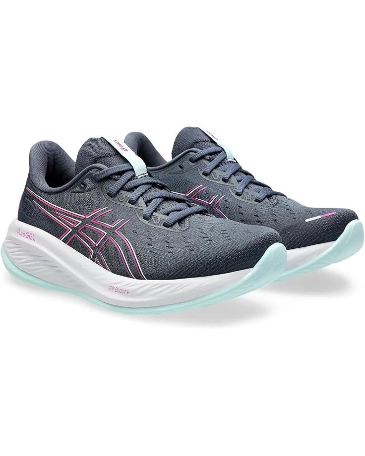 - Featuring PureGEL® technology that ensures smooth transitions for a comfortable ride, the ASICS® GEL-Cumulus 26 shoes are a perfect choice for your everyday runs and training. The FF BLAST™ PLUS cushioning is strategically placed in the midsole to offer impact absorption and responsive rebound. These sports feature a lean-back heel design for added comfort. The polyester mesh upper with overlays, removable OrthoLite™ X-30 footbed, and polyester mesh lining make them a must-have for your everyday comfort. Get ready for your outdoor rides and runs by wearing these running shoes.