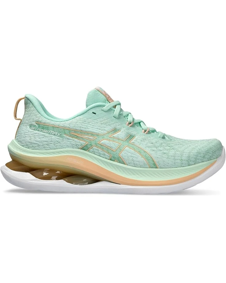 - The ASICS® GEL-KINSE® MAX trainer takes the experience of running on clouds to the next level. It’s been redesigned for runners who want every step to feel like it’s oozing with softness. The tooling is modified with the FF BLAST™ PLUS ECO cushioning for the midsole’s top layer which provides cloud-like comfort while creating an energized feel at toe-off. It works in tandem with the new rubber foaming and HYBRID GEL™ technology to help create smoother underfoot transitions. The engineered mesh upper improves airflow to help your feet keep cool. The reflective details are designed to improve visibility in low-light conditions and the shoes come with a round toe shape and lace-up closure.