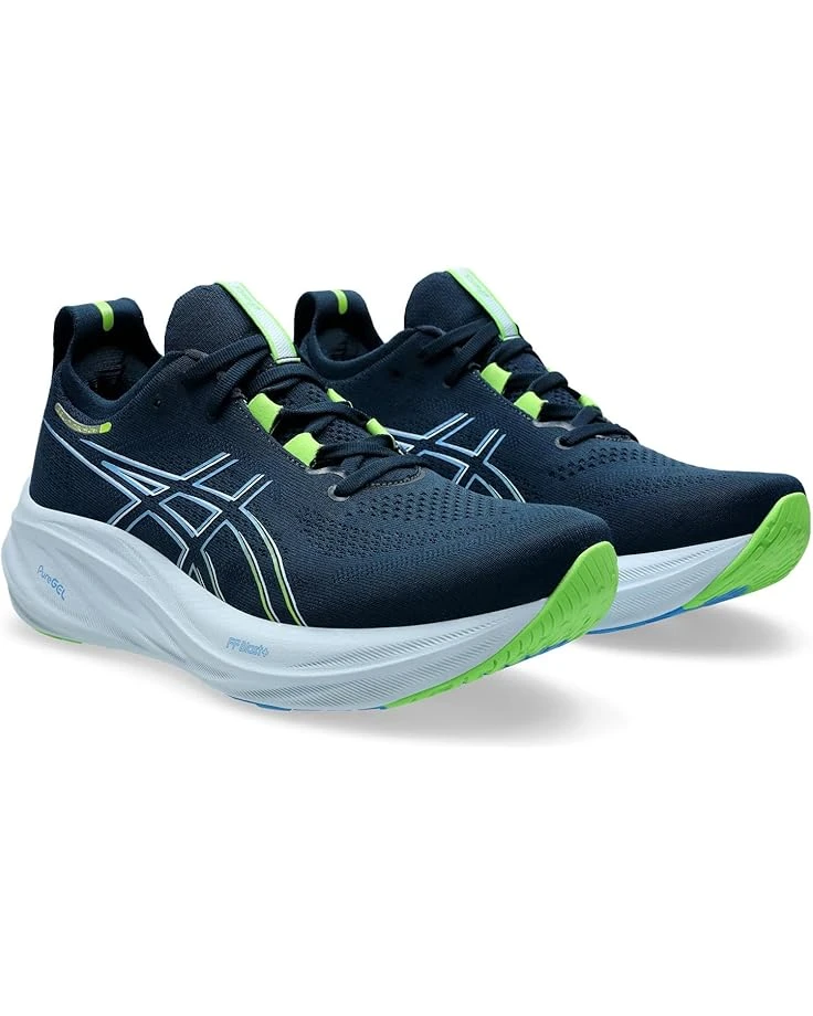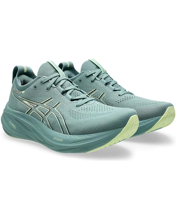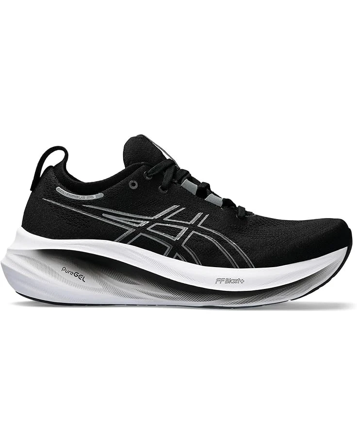 - Take your sporty and casual look to new heights by wearing the ASICS® GEL-Nimbus 26 Sneakers that come with a soft engineered polyester mesh knit upper comfortably wraps your foot while supplying advanced ventilation and a removable OrthoLite™ X-55 sockliner improves step-in comfort. The PureGEL® technology helps provide lightweight cushioning and softer landings and FF BLAST™ PLUS ECO technology midsole cushioning creates a softer landing and a more responsive toe-off. The sneakers feature a round toe shape, lace-up closure for easy adjustability, and an ankle pull tab.