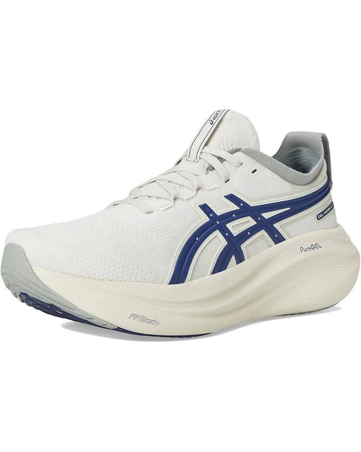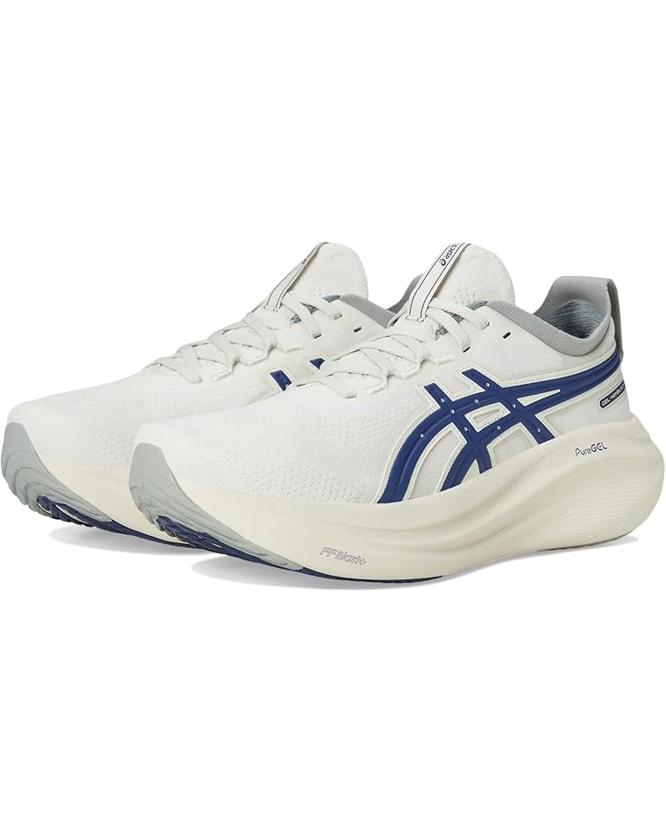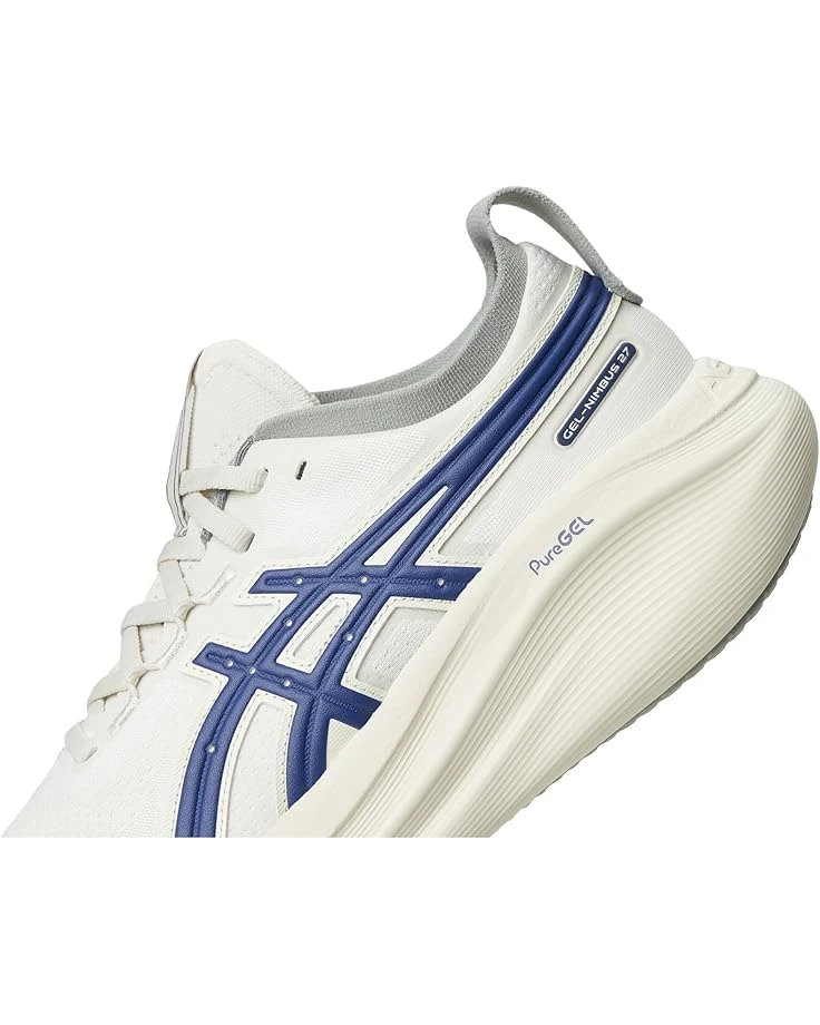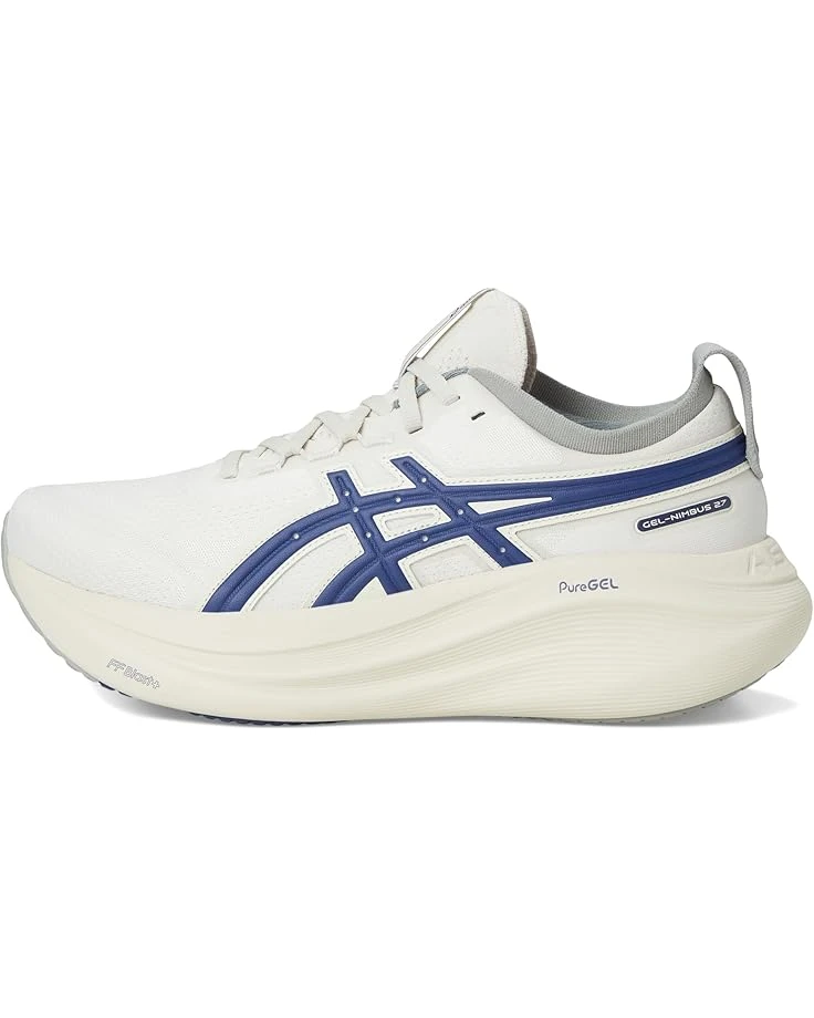 - The GEL-NIMBUS 27 shoes soft cushioning properties help you feel like your landing on clouds. This design is revamped to help create a softer and smoother running experience. A soft engineered jacquard mesh upper comfortably wraps your foot while supplying advanced ventilation. Additionally, the knit tongue and collar help provide a soft and supportive feel. By using FF BLASTâ„¢ PLUS ECO cushioning, this trainer creates a lighter and softer cushioning experience with enhanced focus on sustainability. Lastly, HYBRID ASICSGRIPâ„¢ outsole rubber helps create better traction, improved softness, and advanced durability.