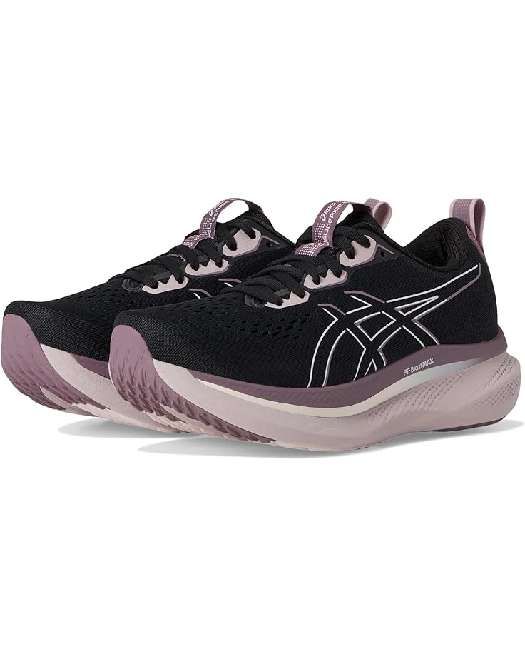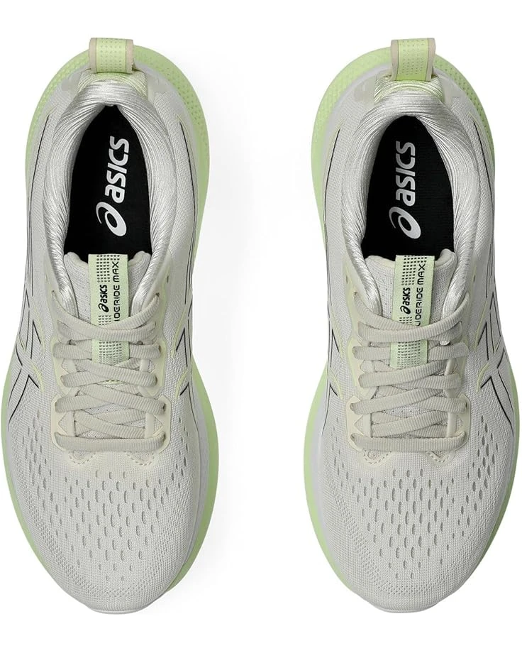 - Keep your feet centered in comfort for a balanced stride wearing the ASICS® Women’s Glideride Max Road Running Shoes. The lace-up footwear features partially recycled upper with jacquard mesh construction that creates a softer feel against the foot while improving breathability.