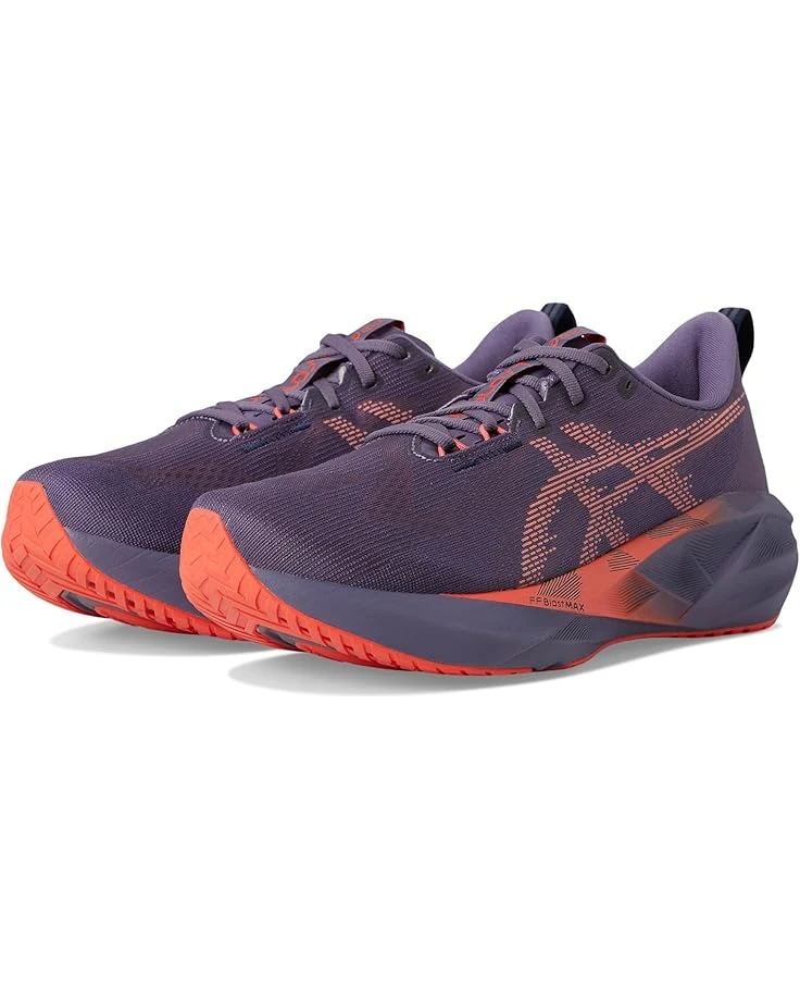 - Take your running experience to the next level with the ASICS® Novablast 5 shoes. Designed for an energized ride, their midsole and outsole geometry helps you feel more dynamic with every step. The tongue wing construction in the upper enhances the fit and minimizes tongue movement for added comfort. Complemented by an engineered jacquard upper, these shoes offer improved stretch, ventilation, and durability.