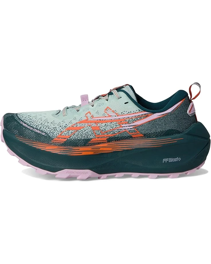 - The ASICS® Trabuco Max 4 shoes are designed to help you navigate the trails with less effort. Their FF BLAST PLUS ECO technology is placed in the midsole to create effortless impact absorption while propelling your momentum forward. It also creates a more dynamic feel that helps keep the shoe lightweight. These lace-up shoes are made of an EVA insole and polyester lining. The GUIDESOLE technology is strategically positioned to create an easy-forward roll. Additionally, it’s scientifically proven to help increase your potential to run further while using less energy. The engineered mesh upper improves breathability. These platform shoes are made with 24% bio-based content and help provide cloud-like comfort.